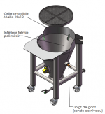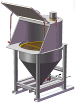 Il peut être monté sur réhausse, châssis à roulette, associé à un Emotteur, démotteur, pétale vibrant, convoyeur pneumatique pour transfert produit.